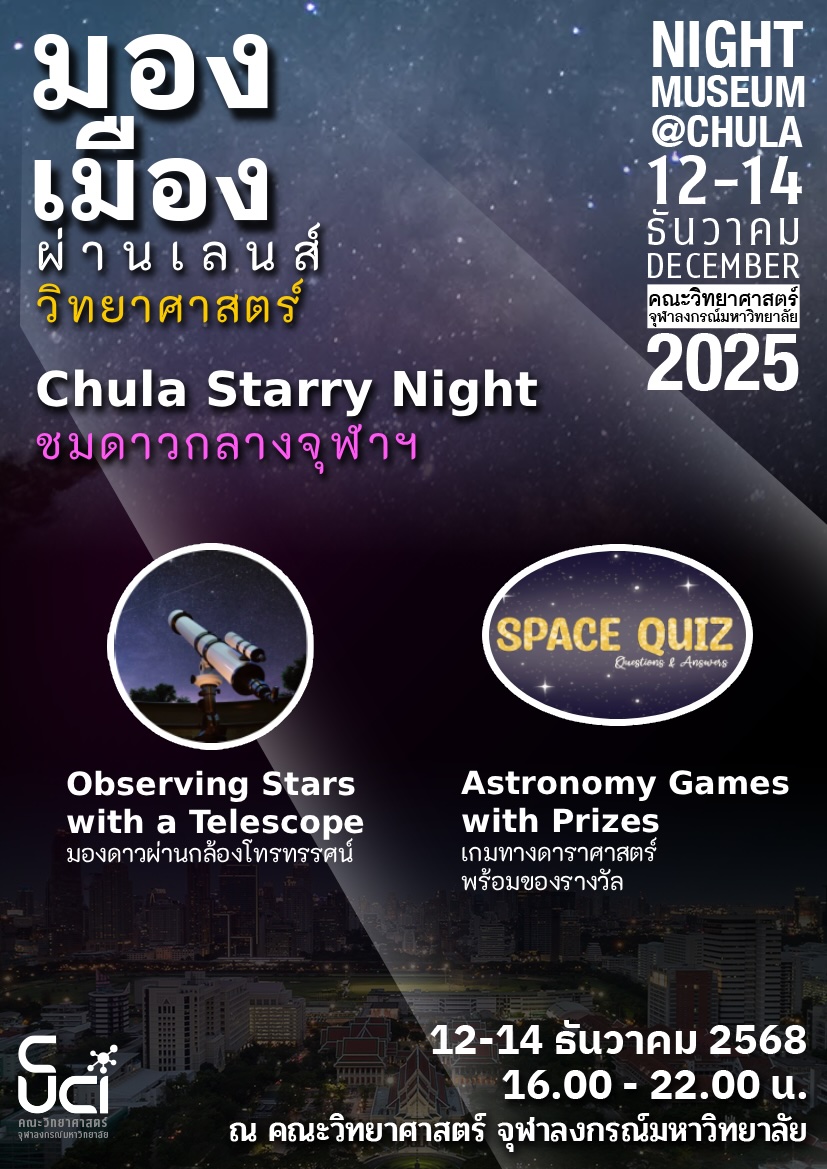 From December 12 to 14, 2025, I served as one of the organizers of the Night at the Museum event at Chulalongkorn University. The event was part of a public outreach initiative aimed at bringing astronomy closer to students and the general public through hands on nighttime observations and informal science communication.